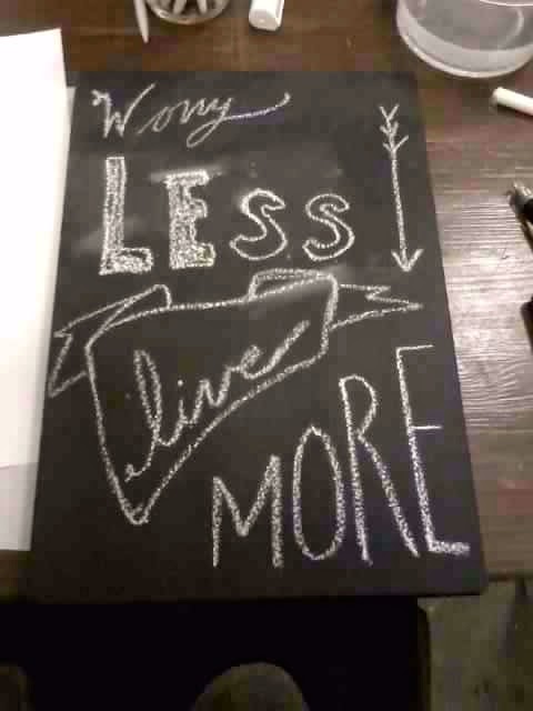 The class was jam packed with about 30 people there. We were given a piece of chalk, a chalk marker, pencil, and a piece of wood that had black chalk board paint on it. We were shown and practiced 3-4 different styles of lettering and got to practice them. Then we were shown how to place quotes and modern designs to go with quotes such as the banner and wreath. We then outlined a phase and design that you wanted to put on the chalk board. The next step was to use chalk to create the lettering and design on the board (this part was annoying and difficult). The final step was to go over the chalk with the chalk marker (this too I found challenging). I think my marker was a bit off and kept not working. Then I didn't like the streaky aspect of the finished project but I think that is the affect it is suppose to have because it's suppose to resemble chalk. I also didn't like that the marker didn't have a fine point to it which is really difficult when your doing lettering.