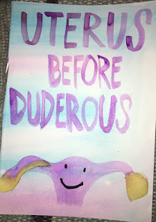 I decided to use joint compound and slather it all over the canvas. Thought it then had to much texture so I took half of it off and then used a giant bubble sheet and pressed it down on the canvas over the we joint compound to make an interesting texture. I used a blow dyer to dry the canvas quickly. Then I used a couple of shades of red to paint the entire canvas. I drew on a funny looking cat and then proceeded with the back breaking work of painting the cat in stripes. This was painful because it was a large narrow canvas that I had on the dining room table and was bent over standing up the entire time painting. The final process was to use charcoal pencil and highlight parts of the cat.